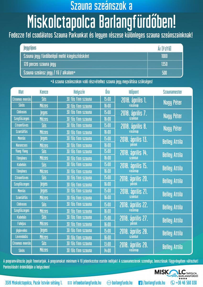 Áprilisi szauna szeánszok a Miskolctapolca Barlangfürdőben!