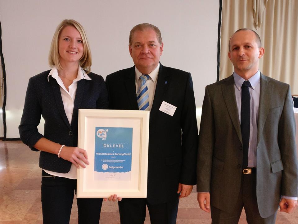 A Miskolctapolca Barlangfürdő**** fürdővezetője, Lantos Zsuzsa átvette az ,,Év fürdője” internetes szavazáson elért első helyezésért járó oklevelet 2016. november 17-én Hévízen, a Magyar Fürdőszövetség Közgyűlésén.