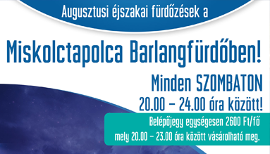 Augusztusi éjszakai fürdőzések a Miskolctapolca Barlangfürdőben!