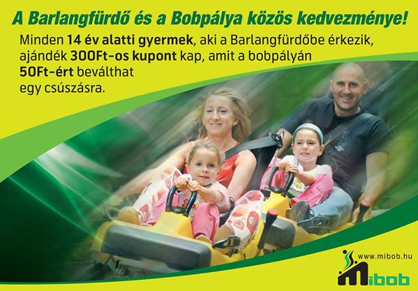 Minden 14 alatti gyermek, aki a Barlangfürdőbe érkezik, ajándék 300 Ft-os kupont kap, amit a bobpályán 50 Ft-ért beválthat egy csúszásra.