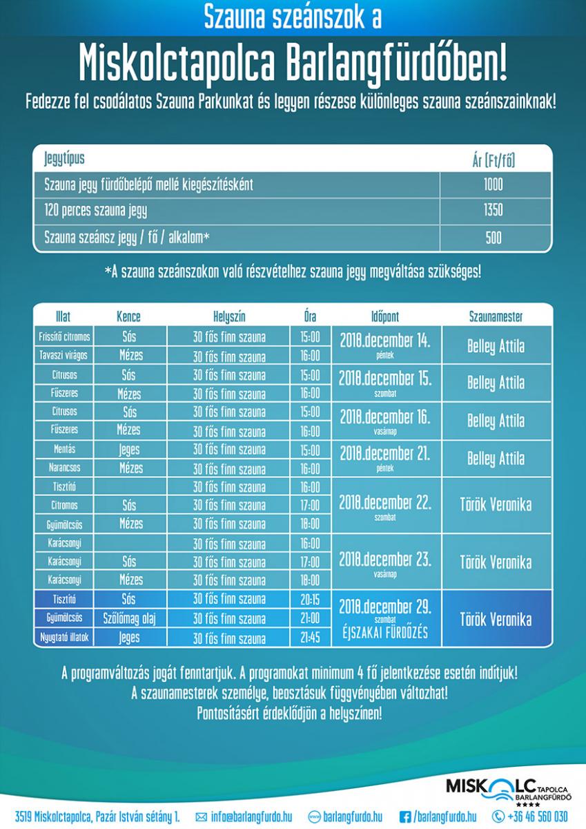 Decemberi szaunaprogramok