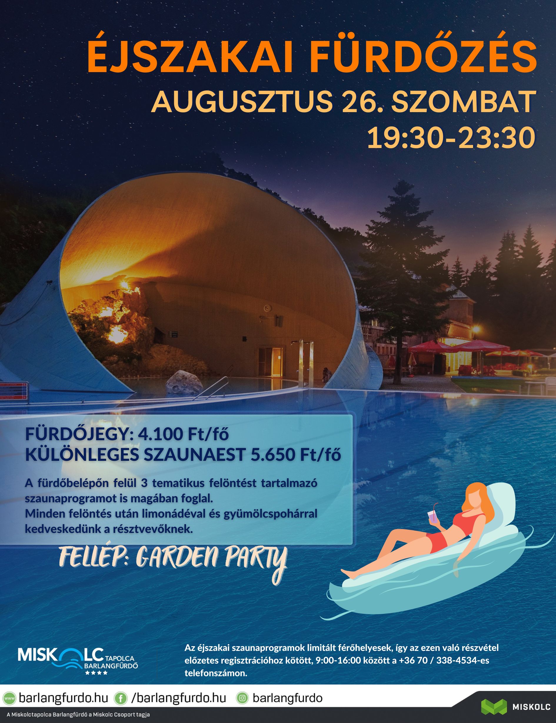 Augusztus 26-án 19:30-23:30-ig, hangulatos éjszakai fürdőzéssel várunk benneteket a Miskolctapolca Barlangfürdőben!