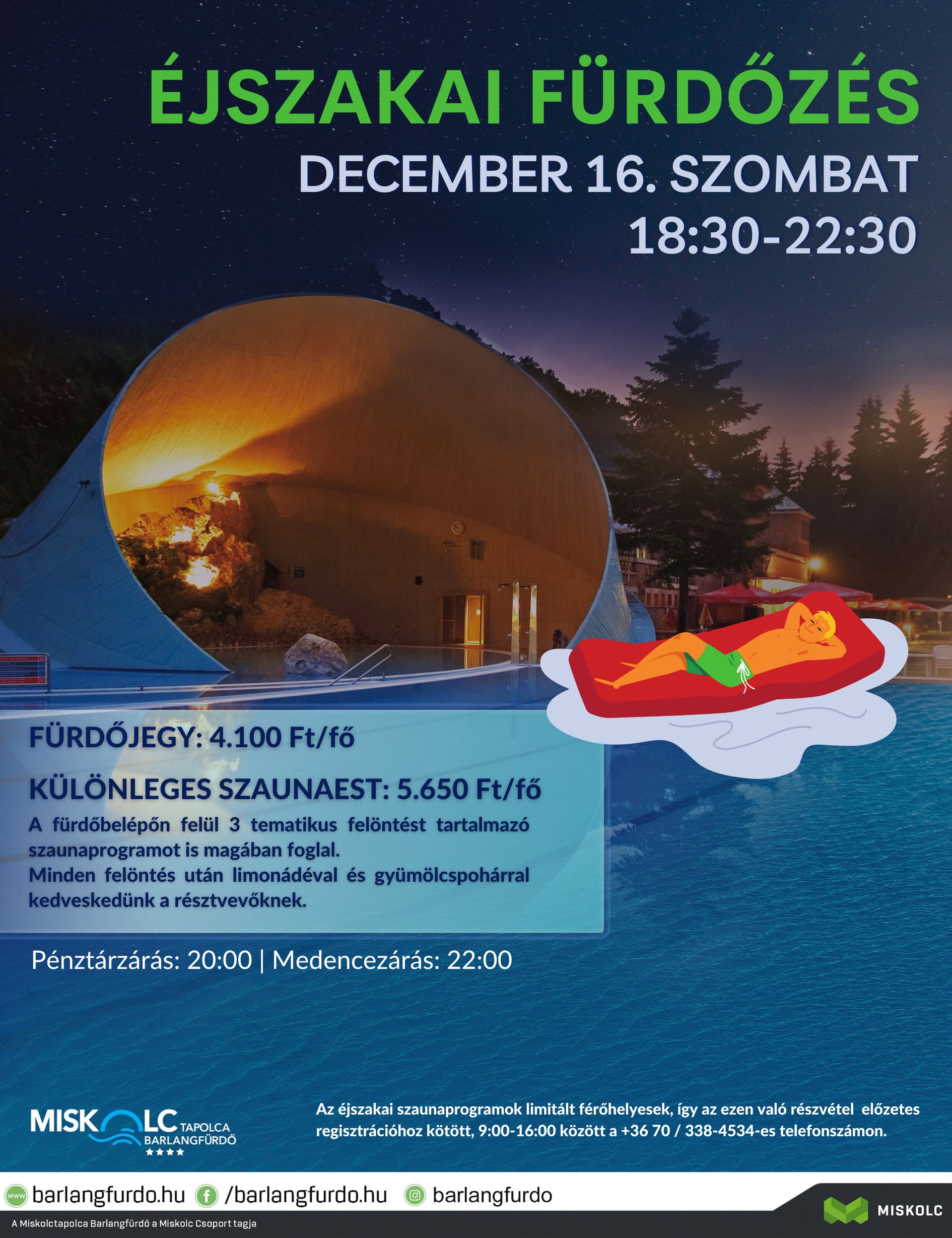 December 16-án 18:30-22:30-ig, hangulatos éjszakai fürdőzéssel várunk benneteket a Miskolctapolca Barlangfürdőben!