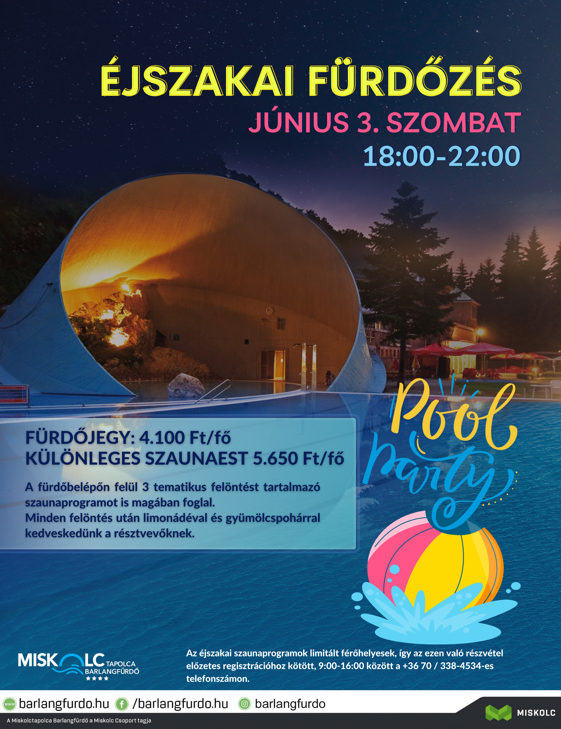 Június 03-án 18:00-22:00-ig, hangulatos éjszakai fürdőzéssel várunk benneteket a Miskolctapolca Barlangfürdőben!