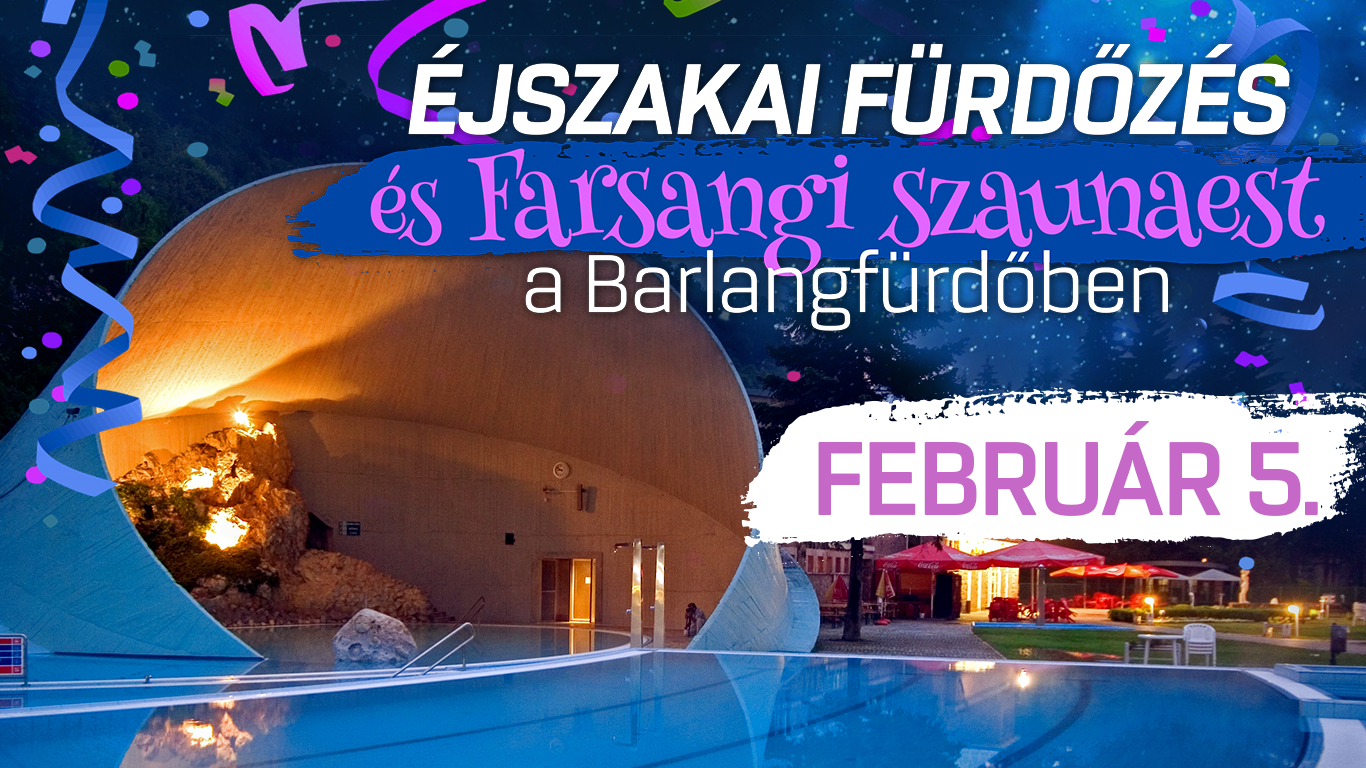 Éjszakai fürdőzés és farsangi szaunaest a Barlangfürdőben