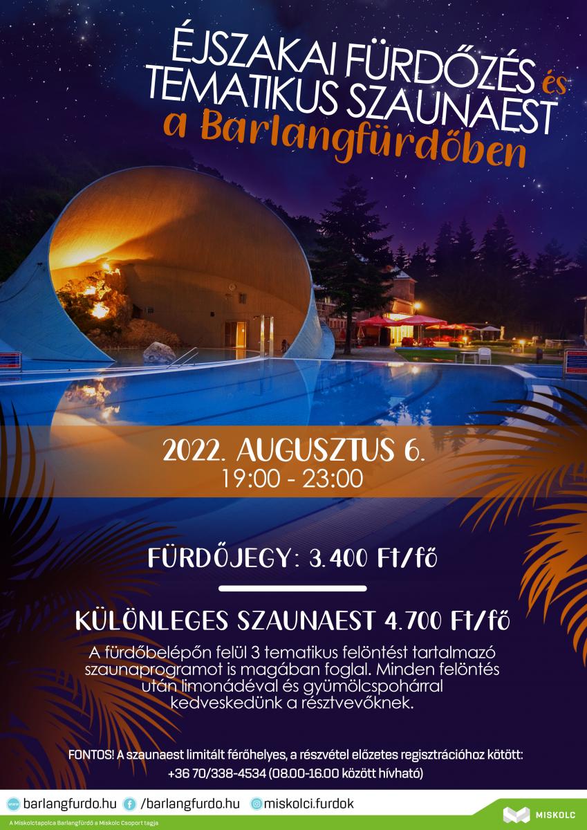 Augusztus 6-án szombaton ismét éjszakai fürdőzéssel várunk titeket a Barlangfürdőben. Ha még nincs terved a szombat estére, akkor látogass el hozzánk és légy részese a különleges esti élménynek.