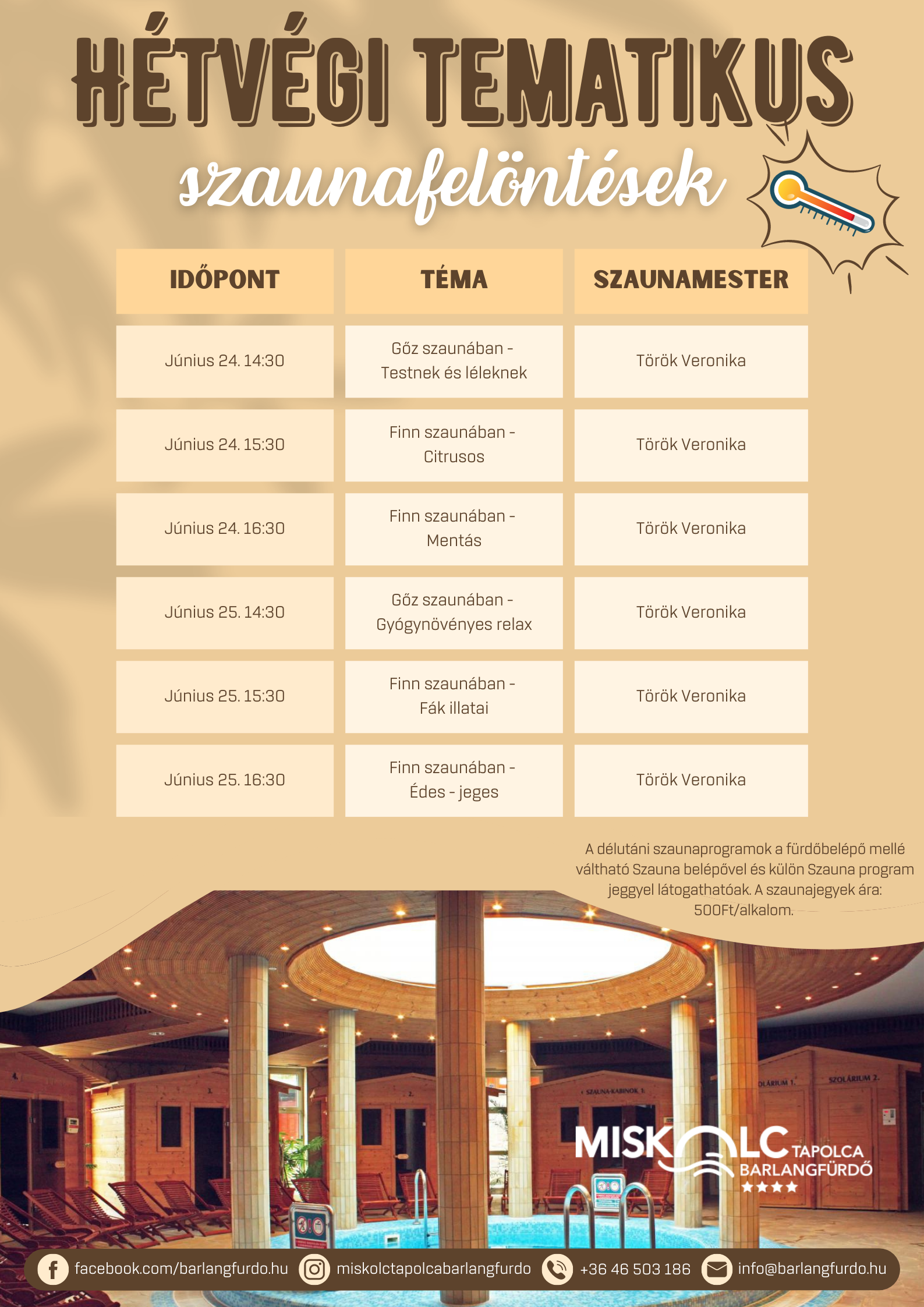 | Június 24. 16:30 | Mentás (Finn szauna) | Török Veronika |