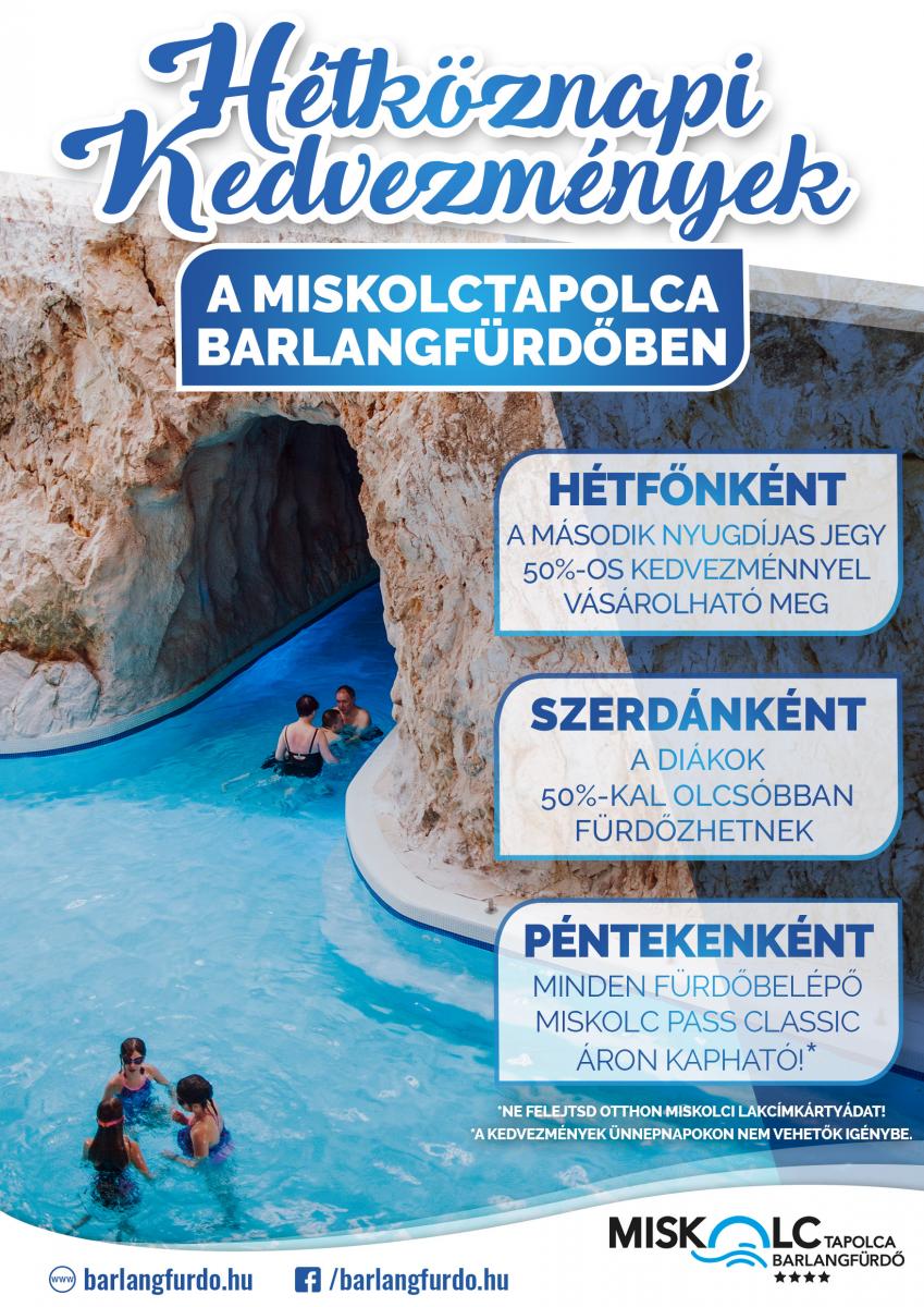Péntek a miskolciaké: Miskolci lakcímkártya felmutatásával minden belépőjegy Miskolc Pass Classic áron kapható! (Időkorlát nélküli felnőtt belépő 2050 Ft/fő helyett 1450 Ft/fő; diák, gyermek, nyugdíjas belépő 1650 Ft/fő helyett 1150 Ft/fő